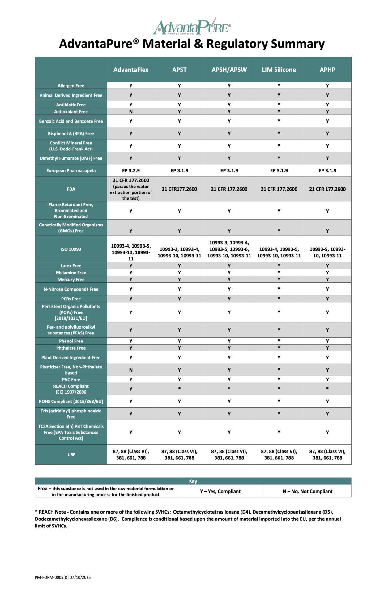 Material & Regulatory Summary